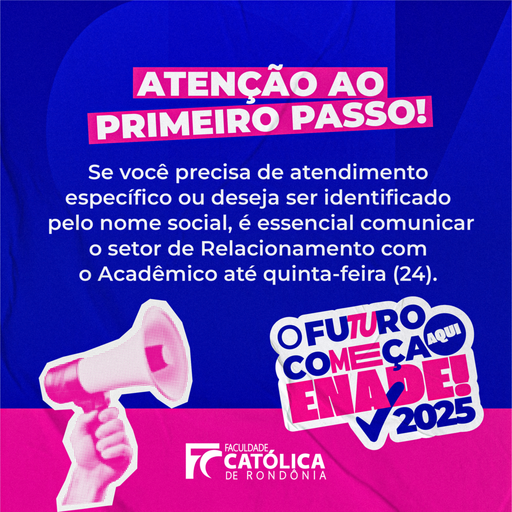 Informamos que encontra-se aberto o prazo para solicitação de atendimento especializado e/ou uso de nome social no Exame Nacional de Desempenho dos Estudantes (ENADE) 2025.