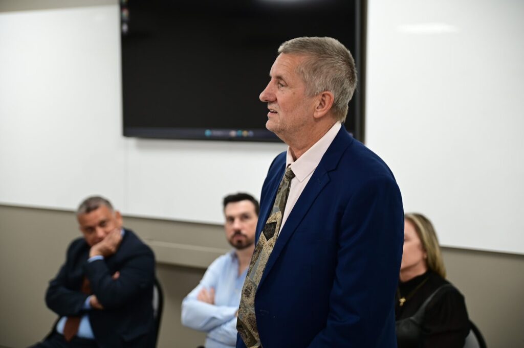 A aula inaugural, realizada no campus da FCR em Porto Velho, foi conduzida pelo professor Dr. Emerson Gabardo, da PUCPR, e contou com a presença de autoridades parceiras, entre elas a promotora de Justiça Edna Antônia Capeli da Silva Oliveira, diretora-geral da Escola Superior do Ministério Público de Rondônia; Arlen José Silva de Souza, representante da Escola da Magistratura de Rondônia (Emeron); além do Promotor de Justiça em Rondônia, Tiago Lopes Nunes, Secretário Geral do Ministério Público do Estado de Rondônia.