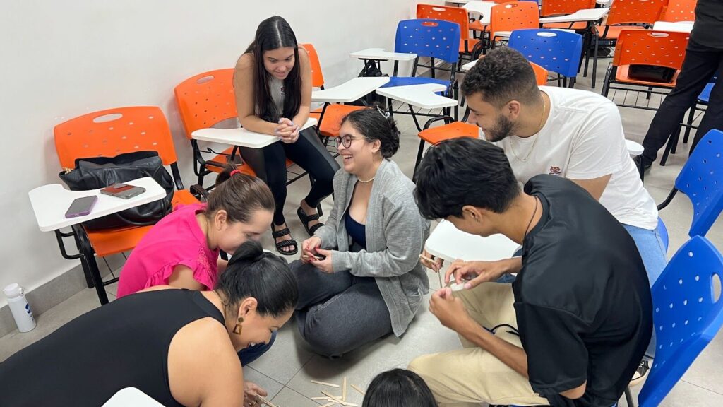 Entrega e contabilização das arrecadações abriu as atividades, com pontos já somados ao placar geral. Em seguida, o Quiz Kahoot + desafios lógicos colocou as equipes à prova em agilidade e raciocínio. Logo após, o desafio da Torre de Palito testou criatividade e estabilidade das construções, com execução de dois representantes por equipe. Na sequência, o Mini Caso de Administração, conduzido pelo professor Márcio, desafiou a aplicação prática de conceitos teóricos. Para encerrar, a disputa do Soletrando envolveu todos em um exercício divertido de precisão linguística.